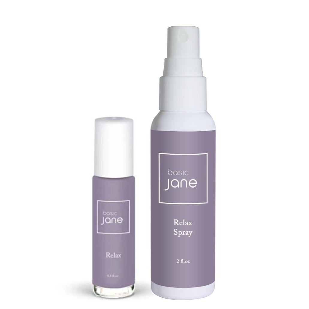 Basic Jane- U.S.A. Relax Duo. Premium CBD wellness products for natural relief and recovery. CBD Oil, CBD Spray. Lavender Relaxing